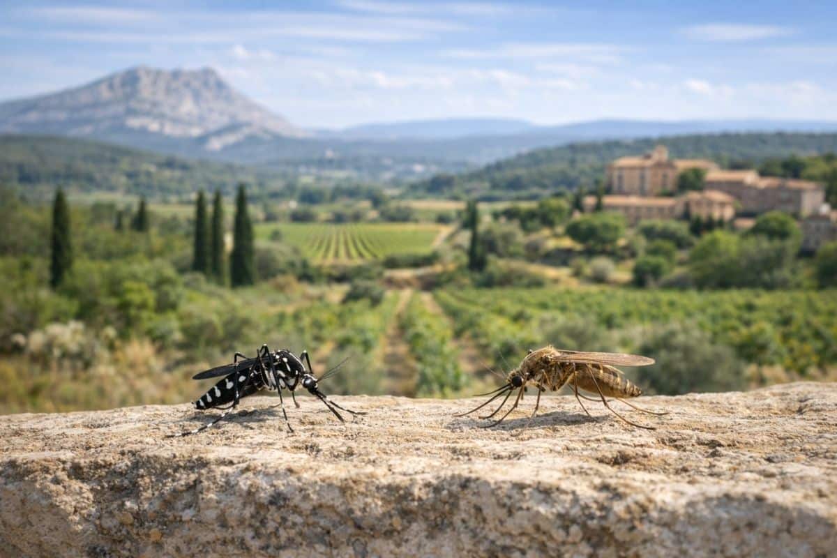 Dans certaines zones, notamment à proximité d’espaces naturels comme Arles ou certaines communes du Var, le moustique tigre peut coexister avec des moustiques classiques.